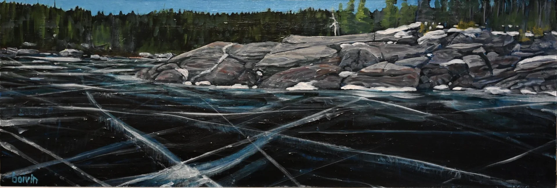 New Ice at the Point, acrylic, 12 x 36, $800